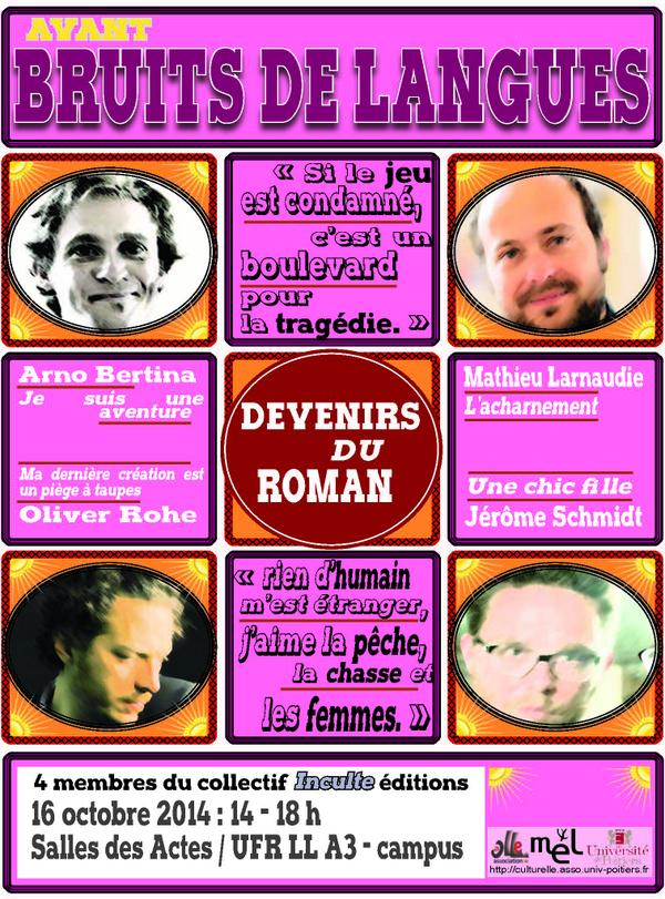 Vous aimez la littérature? Vous êtes intéressés par les métiers d’auteur, éditeur, et traducteur ? Nous vous donnons rendez-vous le jeudi 19 octobre 2017 de 10h à 18h dans la salle des Actes du bâtiment A3 pour les Avants-bruits de langues ! Au programme des ateliers de traduction, des tables-rondes Lire la suite…